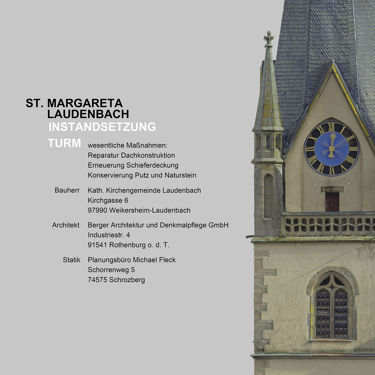 Wesentlicher Inhalt der Außenrenovierung der ab 1912 erbauten katholischen Pfarrkirche ist die Verpressung des Sichtmauerwerks sowie die Konservierung und partielle Erneuerung der Fugen. Fokus liegt dabei auf dem Erhalt des bauzeitlichen Fugenbilds im Bereich zwischen den Fenstern. Im direkten Anschluss an die Maßnahmen an Fassaden, Turm und Leichenhalle schließt Bauabschnitt 2, die Innenrenovierung, an.